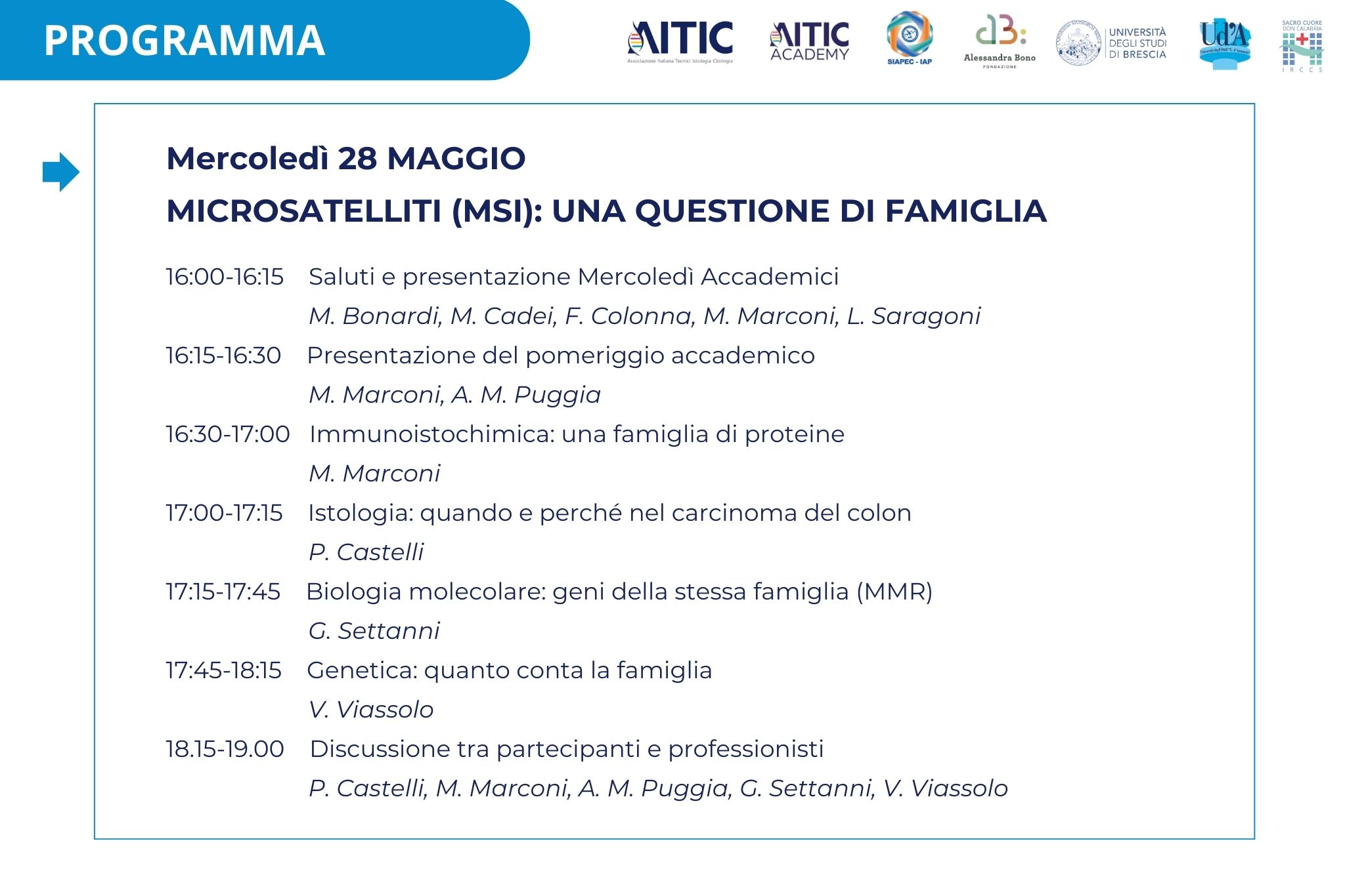 Mutazioni dei geni del MMR sono alla base di alcune condizioni patologiche ereditarie (es. Syndrome di Linch): per queste realtà, vengono testate/seguite famiglie intere. L’analisi del MMR/MSI può avvenire con test di immunoistochimica o di biologia molecolare. Sentiremo parlare dei test diagnostici e della loro applicazione e della condizione genetica ereditaria.